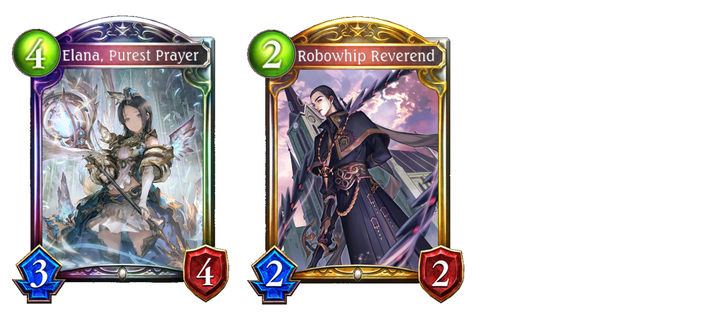 Haven is one of the best classes that can easily satisfy both requirements of her fanfare besides Dragon. One of my favorite turn 5 plays after Elana is playing cherub into another Cherub and when possible have another repair mode and Justine for further buff. Evolve the first Cherub when necessary and get the trait needed to satisfy both conditions of the 2nd Cherub’s fanfare.
